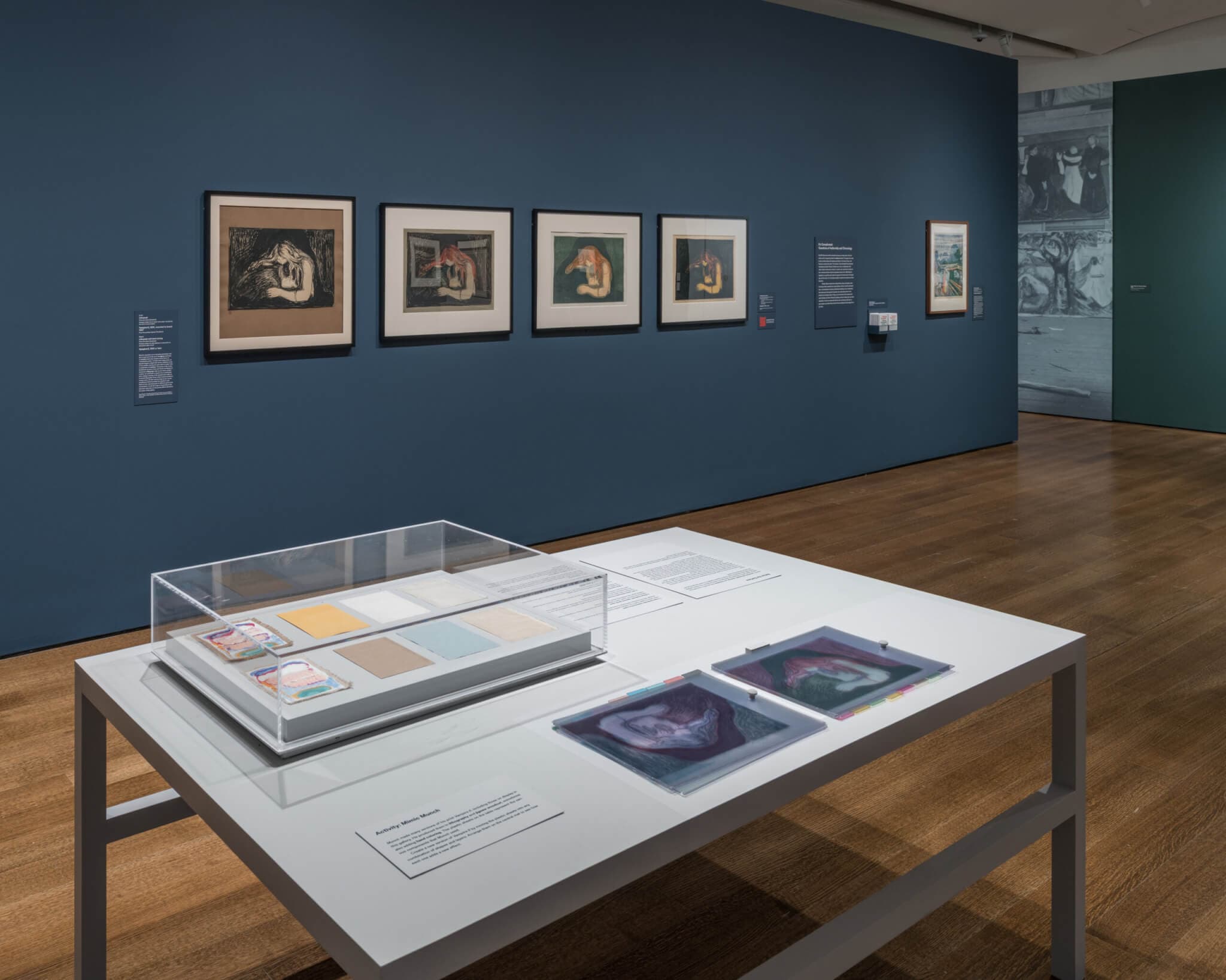 Installation view, “Edvard Munch: Technically Speaking,” on view March 7–July 27, 2025, at the Harvard Art Museums, Cambridge, MA. Photos © President and Fellows of Harvard College. Courtesy of the Harvard Art Museums.