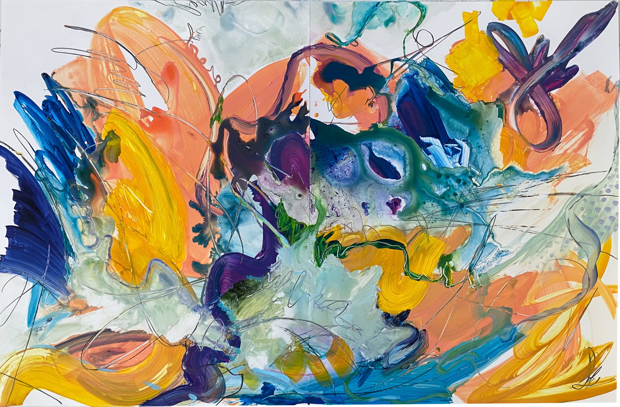 Cicely Carew, For what is bitter and what is sweet is all for my growing, 2020. Acrylic on Yupo paper, 26” x 40”. Artwork courtesy of the artist.