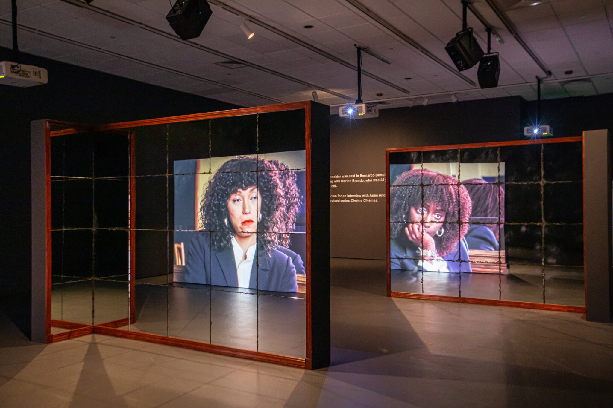 Now, the artist has taken on her most ambitious interdisciplinary work yet with The Listening Takes, a three-channel video installation that builds on her experiences across these media: incorporating sculpture, re-enactments of archival material, an intensely complex soundscape, and the reclamation of a famously ill-treated actress. The piece stages three re-enactments of a 1983 interview with Maria Schneider, who at nineteen was subjected to an unscripted rape scene during the shooting of Bernardo Bertolucci’s controversial 1972 film Last Tango in Paris. Subrin dedicated three screens to three actresses known for their activism—Manal Issa, Aïssa Maïga, and Isabel Sandoval—framing each in a mirrored surround that intermingles the audience within the scene, demanding the viewer confront their engagement with the cavalier violence that the interviewer levels at Schneider throughout her questioning. Recently, I had the opportunity to discuss The Listening Takes, among other things, with Subrin over a happily tangential Zoom call. Our roving conversation covers the artist’s time at MassArt, the power of creative partnerships, and the role of care in creating work that identifies and illuminates personal and collective trauma.